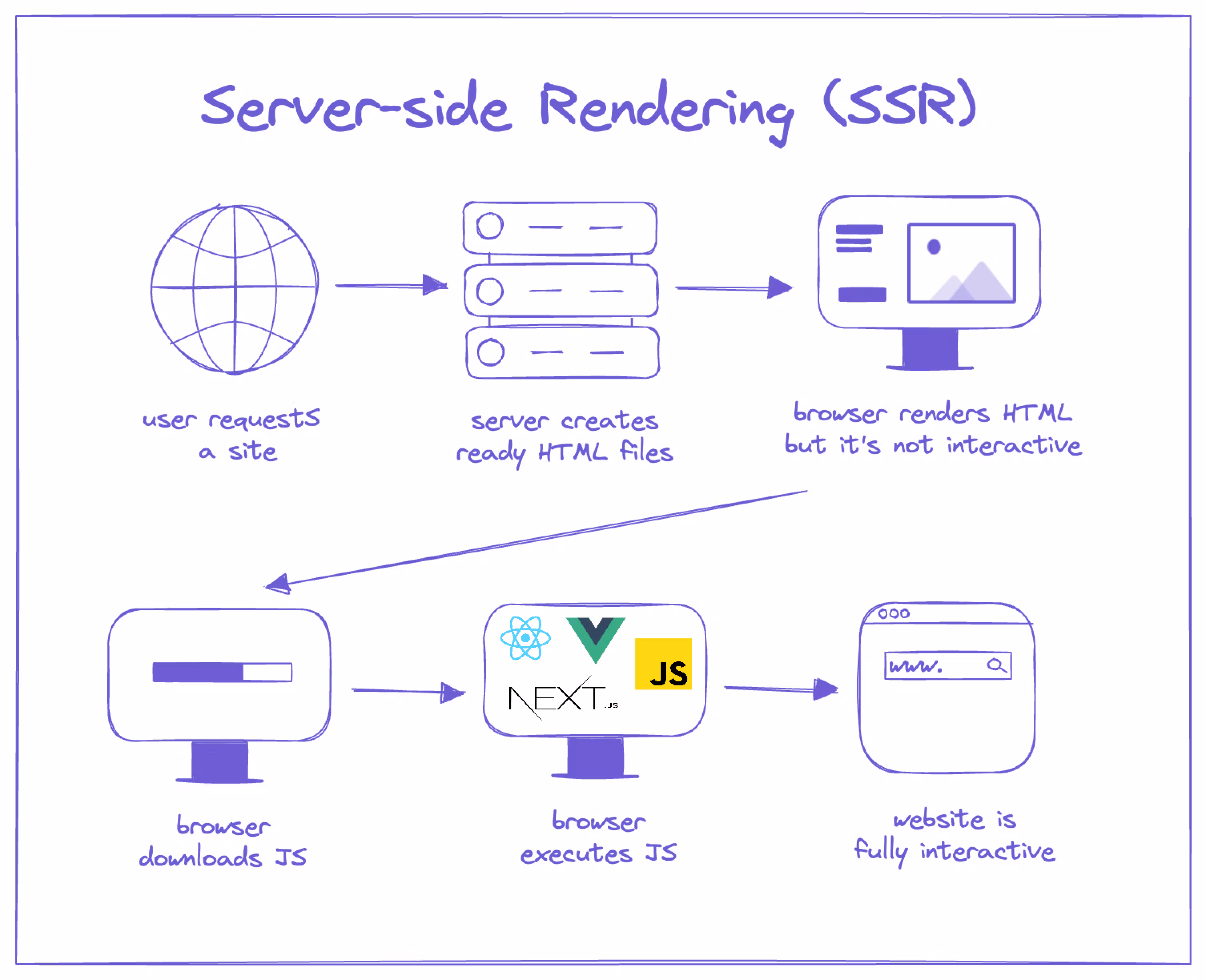 En términos sencillos, el renderizado es lo que transforma el código en algo que el usuario puede ver y usar. Dependiendo de dónde y cuándo ocurra este proceso, podemos hablar de diferentes tipos de renderizado: renderizado en el cliente, en el servidor, estático o incremental.